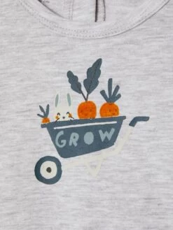 Des imprimés vitaminés animent ces 2 pyjamas légers en coton : il n’est jamais trop tôt pour faire aimer les légumes à bébé !