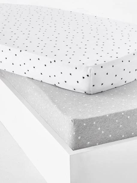- Drap-housse bébés vendu en lot de 2 (1 blanc imprimé étoiles couleur+ 1 couleur imprimé étoiles blanches)