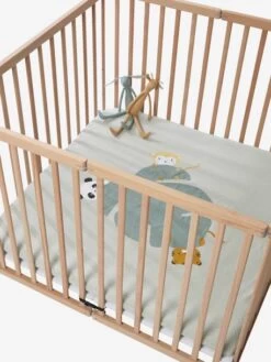 Hygiénique, ce lot composé d’une housse fond de parc animée d’un jouet d’éveil et d’une housse fond de parc imprimée permettra à votre enfant de s’épanouir dans un parc toujours propre et tout doux !