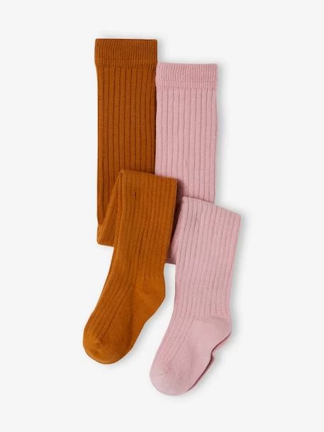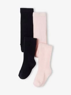 Lot de 2 paires de collants bébé fille en maille 72% coton, 25% polyamide, 3% élasthanne.