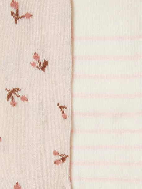 Lot de 2 paires de collants bébé fille en maille 71% coton, 27% polyester, 2% élasthanne, sauf collants motifs fleurs 74% coton, 23% polyamide, 3% élasthanne.