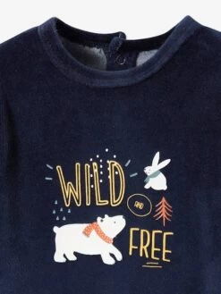 Paysage d’hiver, douceur du velours et coupe confort… ce lot de 2 pyjamas accompagnera le sommeil de bébé avec tendresse.