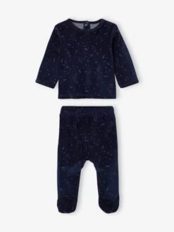 Lot de 2 pyjamas bébé en velours 80% coton, 20% polyester.