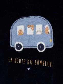 En route pour de jolis rêves avec ces 2 pyjamas tout doux en velours qui emmèneront votre petit bout en voiture sur « la route du bonheur » !