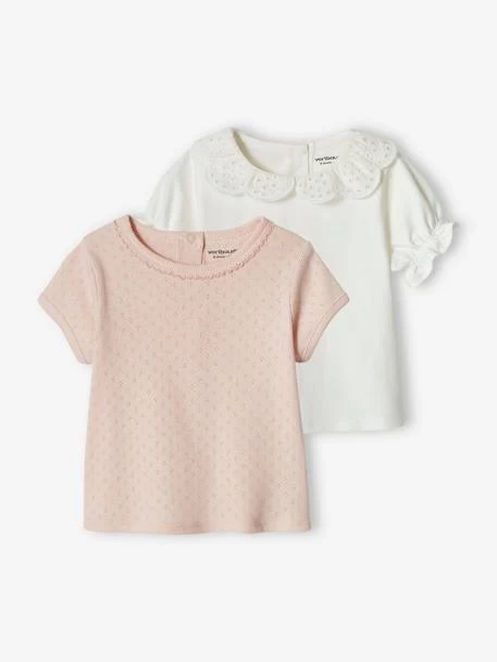 L’un en pointelle, l’autre avec un col en broderie anglaise, ce lot de 2 tee-shirts répond à toutes vos associations : romantique sur un bloomer, preppy avec un denim ou cool-chic sous une robe. 2 styles faciles à associer pour des petits looks craquants !