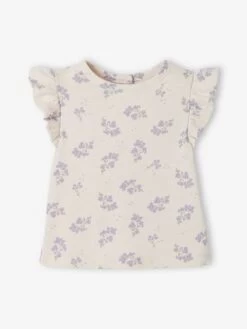 Un col en broderie anglaise sur un T-shirt uni + un T-shirt volanté au délicat imprimé, un beau duo à offrir pour des petites filles romantiques.