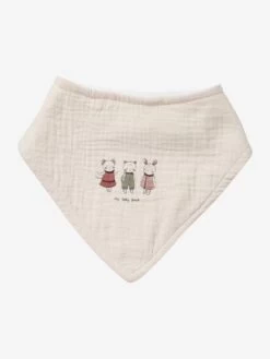 Lot de 3 bavoirs bandanas : en gaze pur coton, dos en éponge 80% coton, 20% polyester.