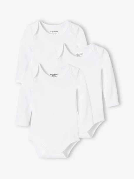 - Lot de 3 bodies manches longues pur coton bio blancs