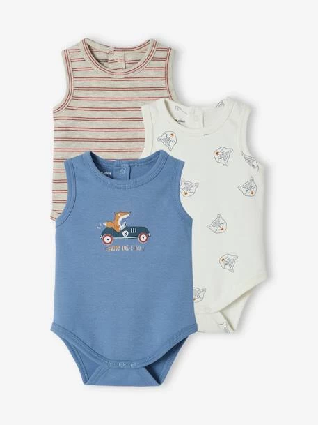 Lot de 3 bodies bébé sans manches 100% coton.