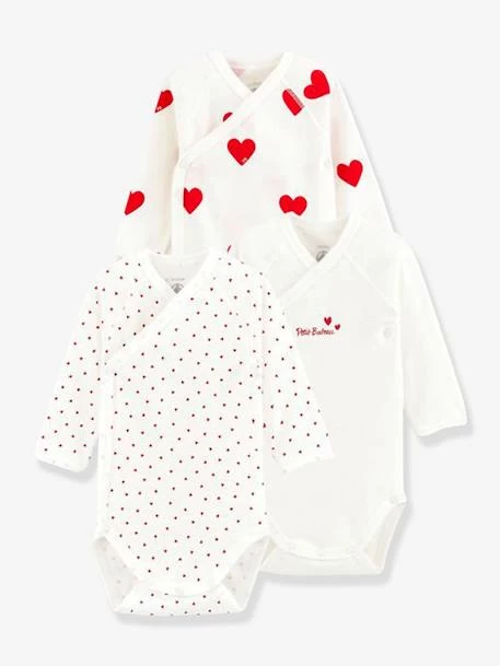 - Lot de 3 bodies croisés coeurs assortis en coton bio PETIT BATEAU
