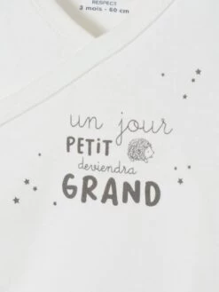 Un jour, bébé deviendra grand et vous remerciera d’avoir pris soin de sa peau avec de jolis bodies en coton bio* ! 3 bodies manches longues délicatement imprimés avec ouverture pressionnée devant pour un enfilage facile.