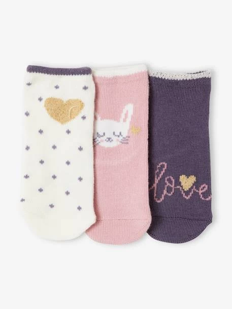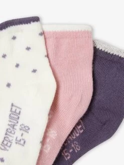 Lot de 3 paires de chaussettes bébé fille 69% coton, 22% polyamide, 6% polyester, 3% élasthanne.