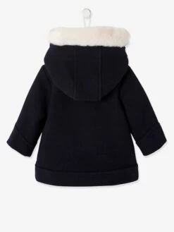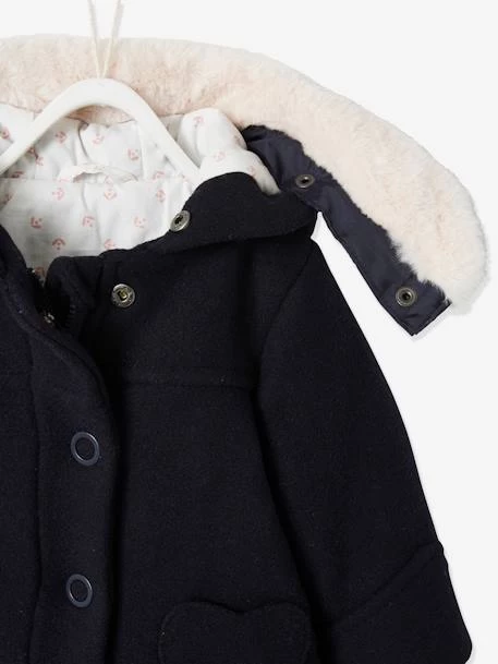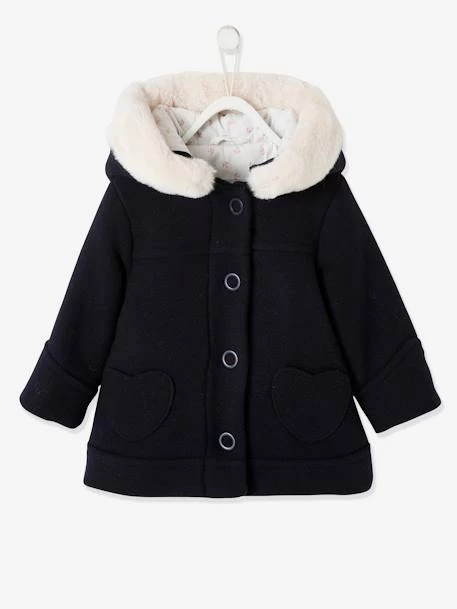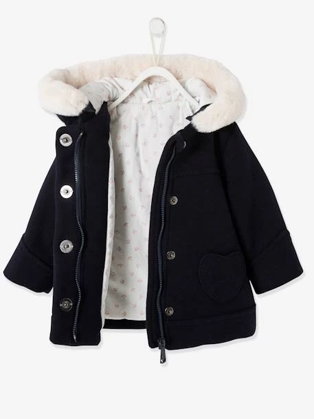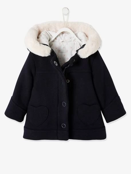 Votre bébé sera belle comme un coeur, bien au chaud dans son beau manteau ! Une capuche bordée de fausse fourrure et deux poches fantaisie… on aime les jolis détails qui font toute la différence !