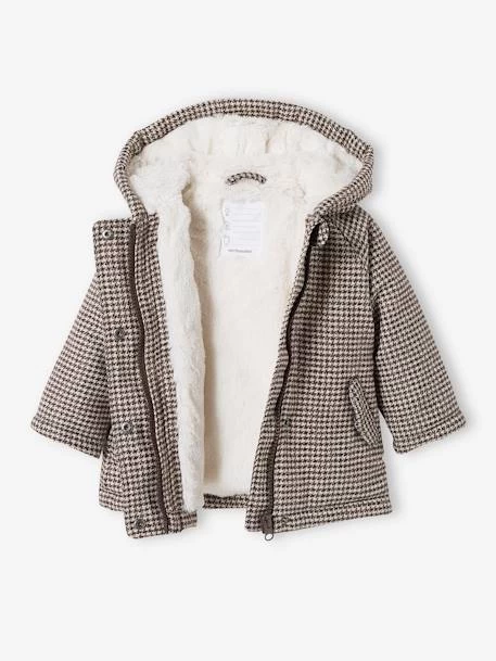 Manteau pied de puce bébé 86% polyester, 11% laine, 3% fibre métallisée.