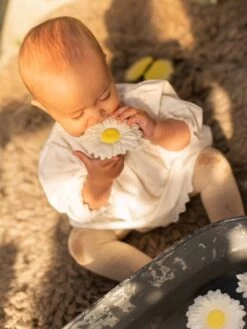 Et voici Margarita la Marguerite de Oli & Carol, un jouet de dentition en forme de jolie fleur, utilisé pour les poussées dentaires de bébé ou pour le bain. La célèbre fleur transformée en jouet à mâchouiller pour le plus grand bonheur des bébés est facile à prendre en main et soulagera leurs petites gencives.