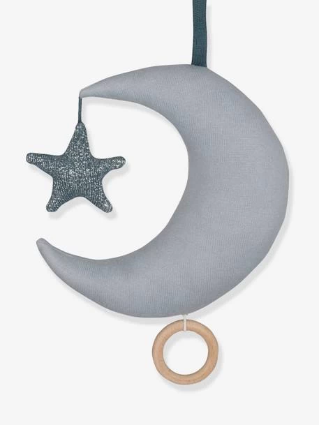 Le mobile musical Lune est fabriqué en coton tricoté 100% biologique. Il joue la mélodie traditionnelle de la berceuse et constitue un magnifique accessoire pour la chambre de bébé. Une sangle munie de velcro aux extrémités sur le mobile permet de l’attacher facilement à un lit ou à un landau.