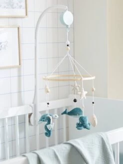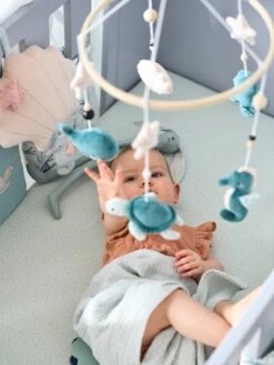 Le mobile Sous l’Océan tournicote au dessus de bébé afin de l’émerveiller et lui présenter de jolis animaux marins au son d’une douce mélodie. Fixez-le sur le lit pour apaiser votre tout petit et l’aider à s’endormir paisiblement. Ce mobile est également une belle idée à mettre sur sa liste de naissance ou à offrir pour faire plaisir à de jeunes parents.