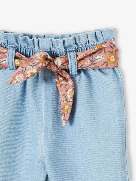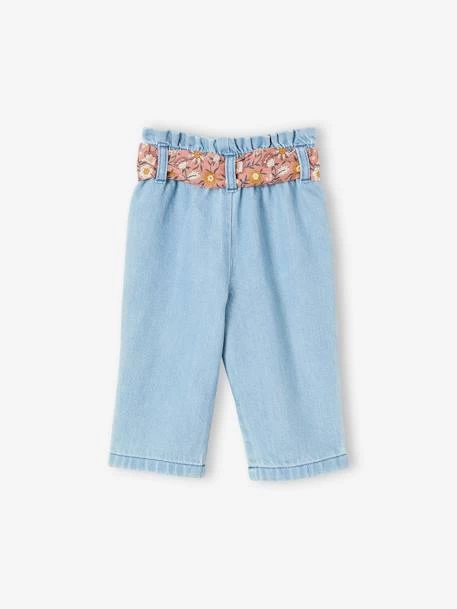 Pantalon large bébé en denim 100% coton, ceinture en tissu 100% coton.