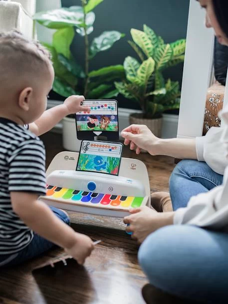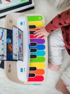 Le Magic Touch Deluxe Piano est un grand piano en bois électronique de la marque Hape/Baby Einstein pour l’éveil musical des tout-petits. En plus de produire des sons dignes d’un vrai piano, votre petit artiste n’a pas besoin de presser des boutons pour jouer, simplement d’effleurer les larges touches en bois ! C’est un jouet amusant et bien construit pour faire découvrir la musique aux enfants.