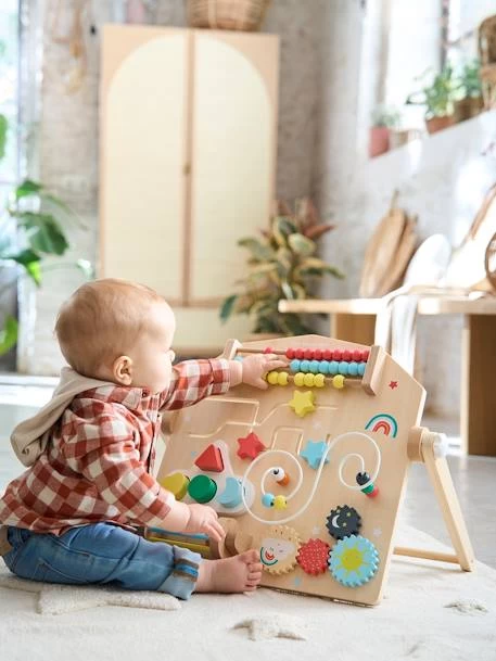 Les petites mains vont aimer se balader sur cette planche d’activités pour faire de joyeuses découvertes ! A la verticale, elle offre plusieurs jeux d’éveil comme boulier, engrenage, labyrinthe, puzzle etc… De quoi occuper les enfants et les aider à grandir en s’amusant !