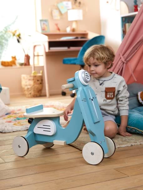 Idéal pour développer la motricité et l’équilibre, cet adorable porteur scooter permettra à votre enfant de s’évader et de s’éveiller !