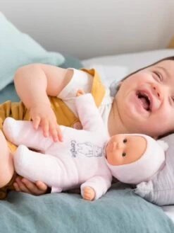 Pti coeur Ours Rose est le cadeau idéal pour le premier anniversaire et/ou le premier Noël ! Ce petit poupon de 30cm a la taille parfaitement adaptée aux petits bras et mains de l’enfant pour être attrapé et manipulé très facilement. Son corps souple sans billes est léger et facile à saisir. Sa tête et ses mains, à la délicate senteur de vanille, sont en vinyle doux au toucher. Sa toile de corps est douce pour l’éveil des sens et est non amovible.