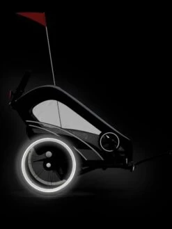- Rangement du kit sportif à bord : Une flexibilité maximale pour faire du vélo ou de la marche quand vous le souhaitez. Le rangement à l’intérieur de la barre de traction du vélo et des roues pivotantes permet de passer rapidement et facilement du mode remorque au mode poussette.