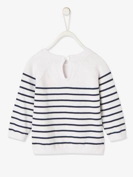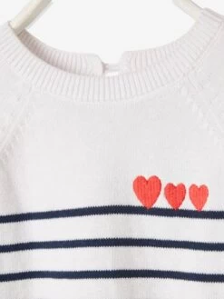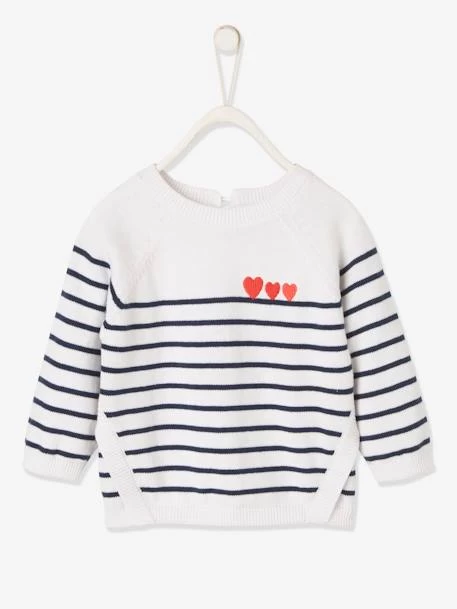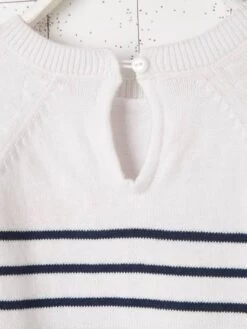 La marinière a le vent en poupe ! Nouvelle coupe, rayure azur et broderie contrastée, ce pull va faire chavirer nos petits coeurs.