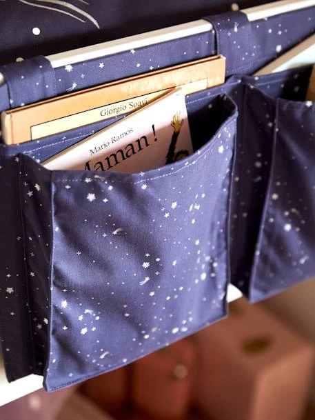 Un lit en hauteur, c’est vraiment chouette, le seul inconvénient : pas de table de chevet à disposition de l’enfant. Pour pallier à ce manque, voici un rangement ultra pratique à positionner en haut du lit. Votre enfant pourra tranquillement ranger ses livres, ses lunettes etc. avant de s’endormir !