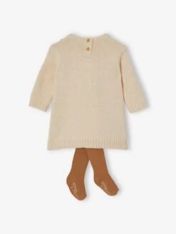 L’incontournable robe en tricot est renouvelée par une jolie torsade et un doux coloris écru. Avec son collant assorti, elle apporte douceur et fantaisie à l’hiver !