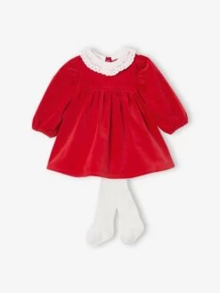 Du velours pour la douceur, un col en broderie anglaise pour le style… Bébé sera au coeur de la fête avec cette robe au couleur de Noël ! Avec son collant, ce duo est une belle idée à déposer au pied du sapin.