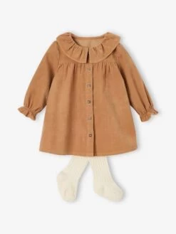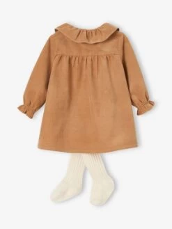 C’est la petite robe craquante toute trouvée pour réchauffer l’hiver. Elle cumule les jolis détails : un grand col volanté, un tendre coloris caramel sur un velours tout doux et un collant assorti… oui, c’est le cadeau parfait !
