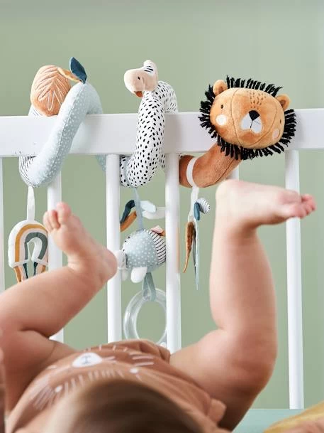 Toujours prête à s’enrouler pour émerveiller les bébés, cette spirale d’activités Tanzanie a plus d’un tour ! En velours tout doux, elle amusera votre enfant grâce à de petits jouets : une feuille, une tortue hochet à billes, un arc-en-ciel avec rubans et grelot … Les différentes couleurs et textures de cette spirale d’activités participeront à l’éveil des sens des tout-petits. Cette spirale s’enroule sur la anse d’un cosy ou sur le bord du parc ou du lit et promet à l’enfant de superbes découvertes !