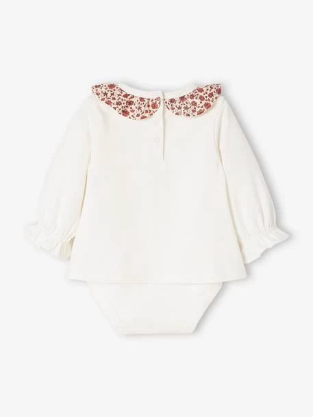 Élégant avec son col fleuri, ce T-shirt relève tous les bas du vestiaire de bébé. Son secret : un body intégré pour garder le T-shirt bien en place. Un 2 en 1 frais et raffiné, c’est la bonne idée en cadeau de maternité !