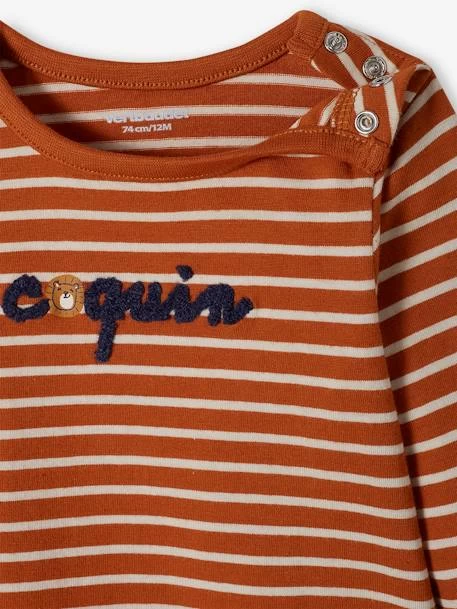 - Pour éviter d’irriter ou chatouiller la peau sensible des tout-petits, un tampon imprimé remplace l’étiquette cousue au dos
