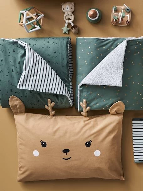 Taie d’oreiller bébé biche GREEN FOREST en pur coton