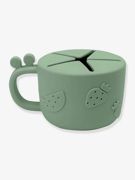 Ultra-pratique en poussette, en voiture et même au jardin ou à la maison, votre enfant pourra d’une main tenir l’anse pendant que, de l’autre, il attrapera les morceaux de sa collation (fruits, biscuits…) pour grignoter de façon autonome sans renverser de miettes partout !