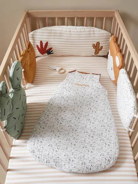 A la fois déco, confortable et anti choc, le tour de lit / tour de parc rassure les enfants en les entourant de douceur et en reproduisant le cocon de la maternité. Bébé pourra s’éveiller en toute sécurité, sans risquer de se cogner contre les barreaux. Les éléments modulables se fixent par nouettes et permettent une bonne circulation de l’air.