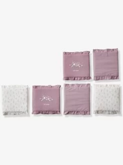 - 2 éléments en gaze de coton avec encre gonflante et volants, 2 éléments en popeline avec carreaux argent et volants, 2 éléments en gaze de coton imprimé fleurs et volants