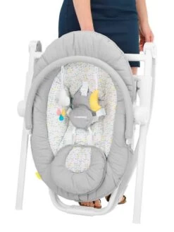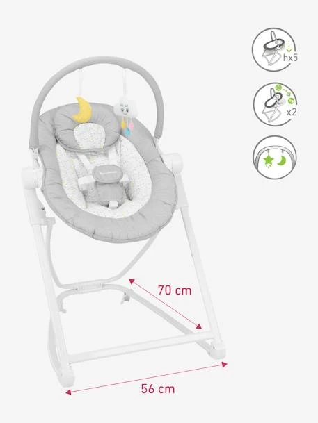Du salon à la salle à manger, le transat Compact’Up de Badabulle s’adapte aux situations du quotidien pour permettre à bébé de vous accompagner du moment de détente près du canapé à l’heure du repas grâce à ses 5 hauteurs dont une position haute spécial table. Simple d’utilisation, vous la réglez en hauteur d’un seul geste, inclinez l’assise en mode repos ou éveil et actionnez le mode balancelle pour bercer bébé. Léger et ultra compact une fois plié, ce transat modulable est idéal pour être emporté facilement dans les déplacements avec votre enfant.