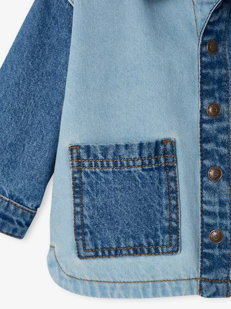Coupée comme une surchemise, la veste en jean joue les contrastes avec un patchwork de denim très original. Ouverte sur un tee-shirt ou fermée comme une chemise, elle donne un style cool et revisite l’incontournable veste en denim.