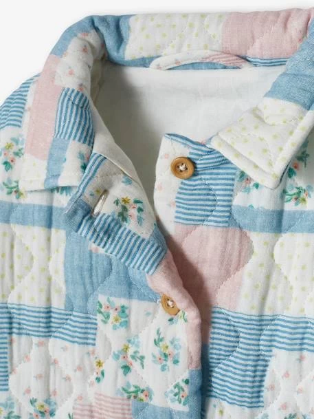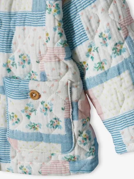 Un patchwork de motifs et des tonalités en camaïeux, cette veste en gaze de coton invite la fantaisie dans le vestiaire des filles. Matelassée, elle se porte dès le printemps et réchauffe les tenues estivales.