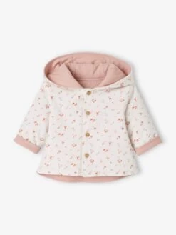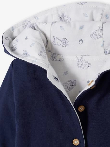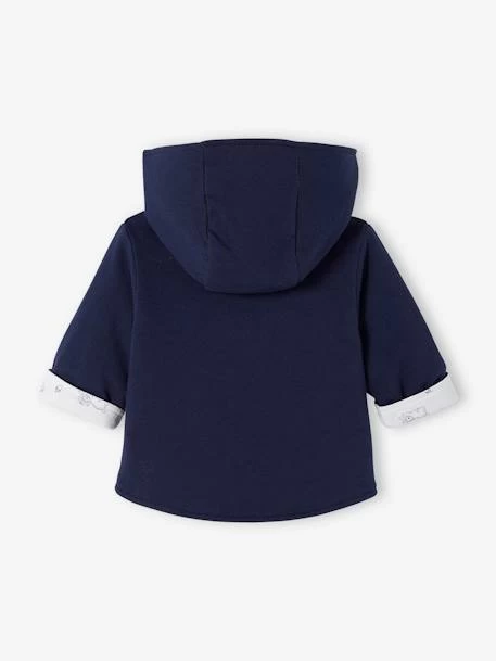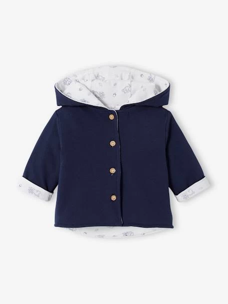 Veste réversible bébé à capuche 100% coton. Garnissage 100% polyester.